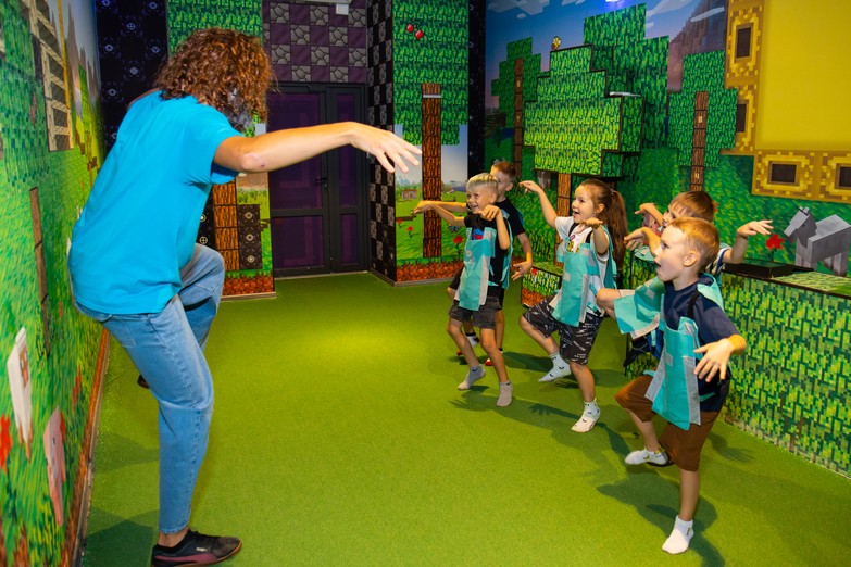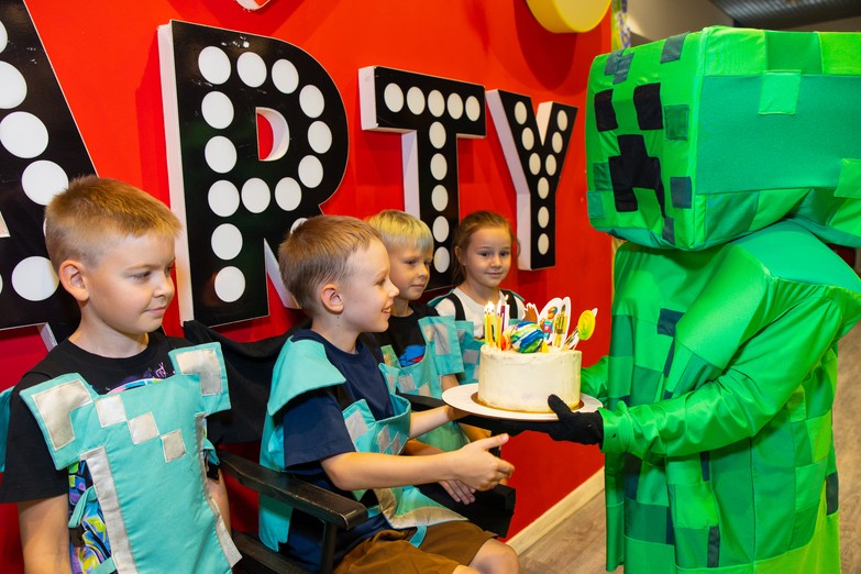 В программу входят квесты: «КОСМИЧЕСКИЕ ПРЯТКИ» и «МАЙНКРАФТ», живые актёры, ведущие и постоянный присмотр за детьми. А ещё уникальные технологии квестов позволяют играть даже самым маленьким — начиная с 5 лет.